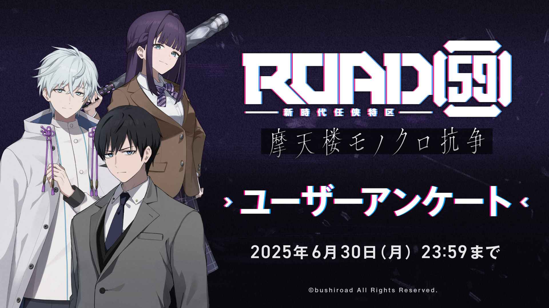 こちらは、「Nintendo Switch/Steam向けビジュアルノベルゲーム『ROAD59 -新時代任侠特区- 摩天楼モノクロ抗争』」ユーザーアンケート回答フォームです。